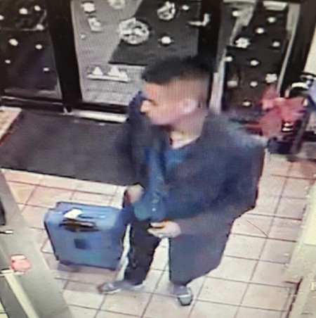Es probable que el señor Reyes Lavacude viaje con una maleta de mano de color azul. Los investigadores han puesto a disposición una fotografía de la maleta y piden al público que tome nota de su aspecto.