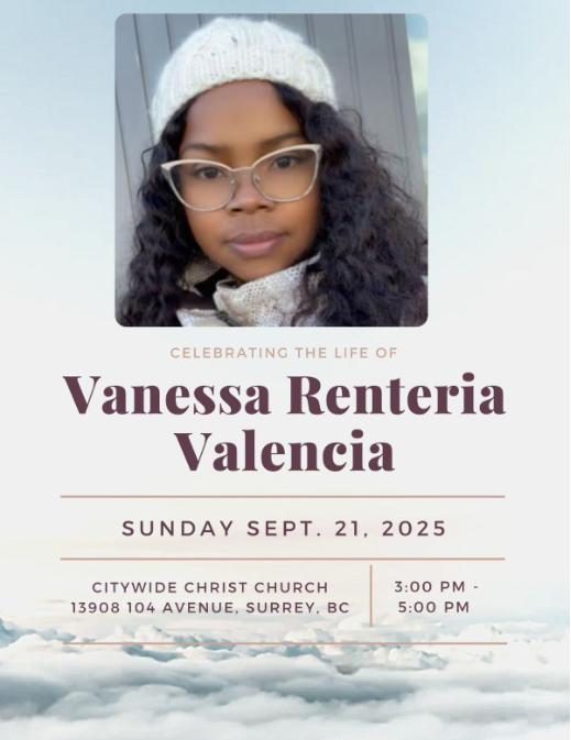 Vancouver (CBNnoticias) – Hoy se cumple el primer año de la trágica muerte de la ciudadana colombiana, Vanessa Rentería Valencia, quien perdió la vida a manos de un oficial de la Real Policía Montada de Canadá (RCMP) que le disparó en varias oportunidades en un hecho ocurrido en la ciudad de Surrey, el 19 de septiembre de 2024.